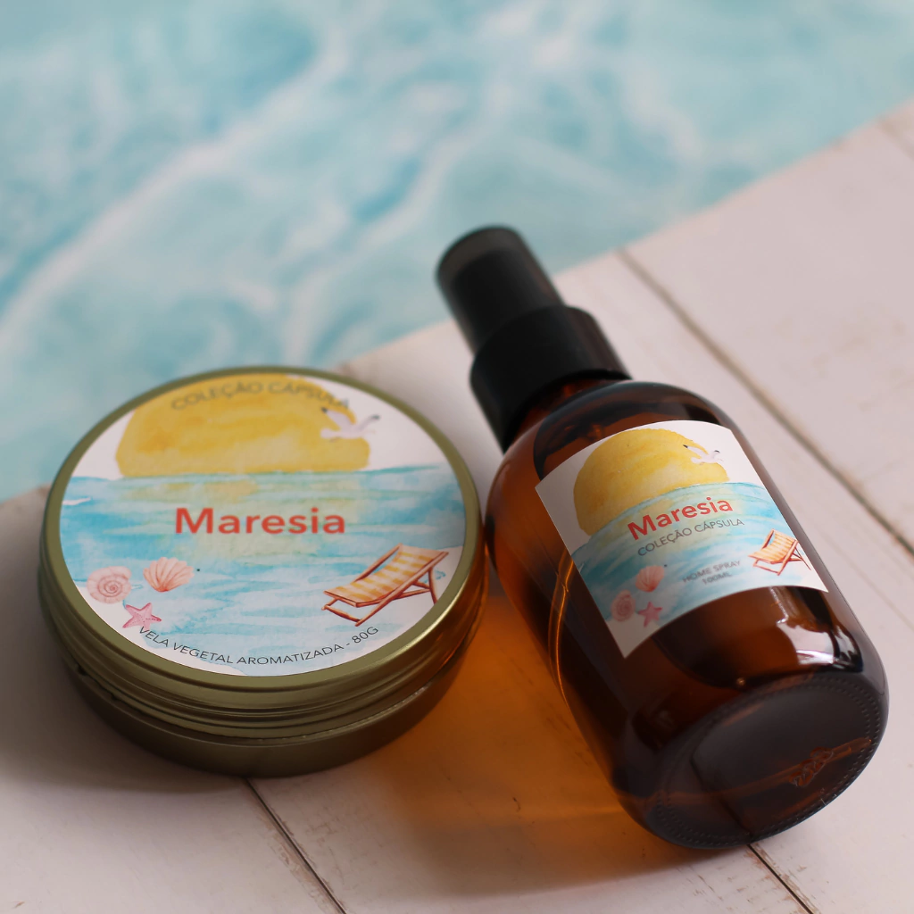 O frescor da brisa do mar agora pode fazer parte da sua casa — de forma completa. O Kit MARESIA une dois dos nossos queridinhos da Coleção Cápsula: a vela aromática e o home spray com a fragrância exclusiva inspirada no encontro entre a luz do sol e o vento do litoral. Frutado, floral e leve, esse aroma abre as janelas da alma e renova os ambientes com delicadeza e sofisticação.